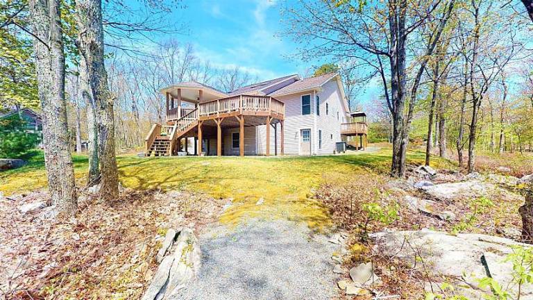Lord’s Valley. This four-bedroom, four-bath home includes a back deck with an outdoor hot tub where you can enjoy a view of the pond.