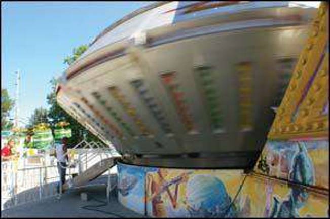 The Gravitron spins at incredible speed at the Our Lady of Fatima Church’s annual carnival. The ride was for kids who preferred their carnival treats 'stirred’ rather than 'shaken.’