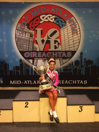 PHILADELPHIA — Sparta resident Mary Wick won top prize at the Mid-Atlantic Regional Irish Dance Championships in Philadelphia over Thanksgiving weekend. This competition, called an Oireachtas (ah-rock-tus), serves as the qualifying round for the World Irish Dance Championships which will be in Glasgow, Scotland in late March 2018. Mary competed against 117 championship-level dancers from the Mid-Atlantic region performing three dances for a panel of five judges, and earned a 1st place from all five judges. One of Mary’s teachers, Karen Hegarty-Wright, won the same prize in 1993. Mary is a member of the Wick-Hegarty school which offers classes in Denville, Sparta and beginning in December in Ledgewood. For more information, visit Wick-Hegarty.com
